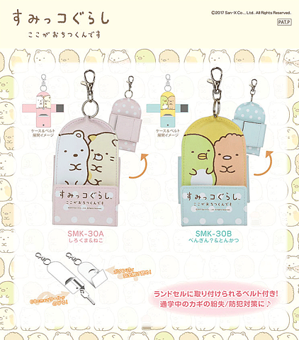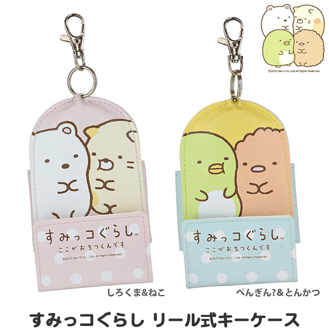 すみっコぐらし リール式キーケース すみっコぐらしデザインのリール式キーケースが登場! 「しろくま&ねこ」「ぺんぎん?&とんかつ」の2種類のタイプをご用意しました! 通学中のカギの紛失、防犯対策に! ランドセルやリュックサックに取り付けられるベルト付き。