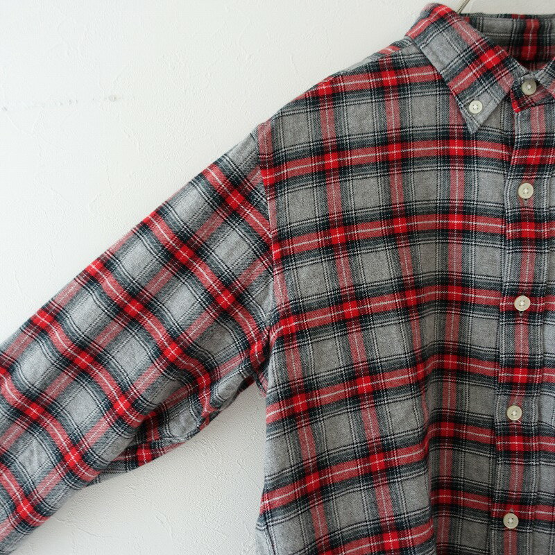 カラーはグレー、レッド、ホワイト、ブラックなどのチェック柄で、起毛がかった素材で仕立てられています。